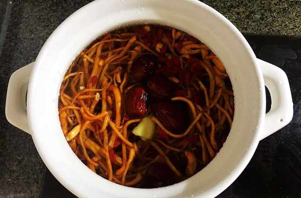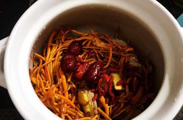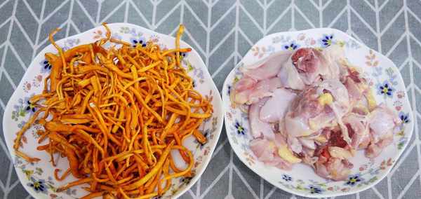 食材:雞肉,蟲草花,鹽,枸杞,紅棗,薑片