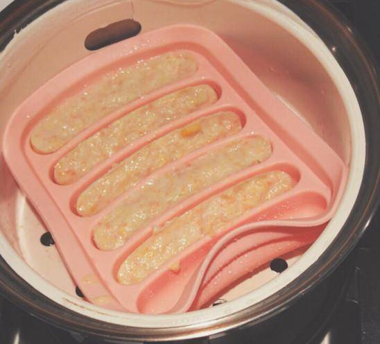第五步:調好的肉腸糊糊 倒入模具中 模具刷一層油(如果沒有模具 就放入錫紙中) 蒸鍋中火加熱25分鐘!出鍋!!!