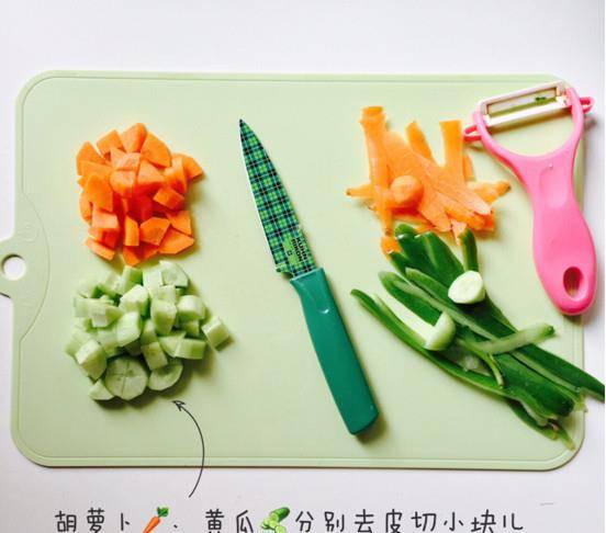 第二步:把胡蘿卜黃瓜分別去皮 切小塊