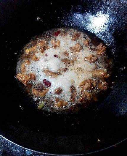 鴨油炒出後,倒適量生抽提味,少許老抽上色,適量白糖提鮮,再加適量鹽,翻炒均勻。