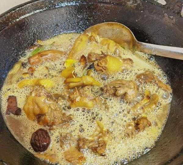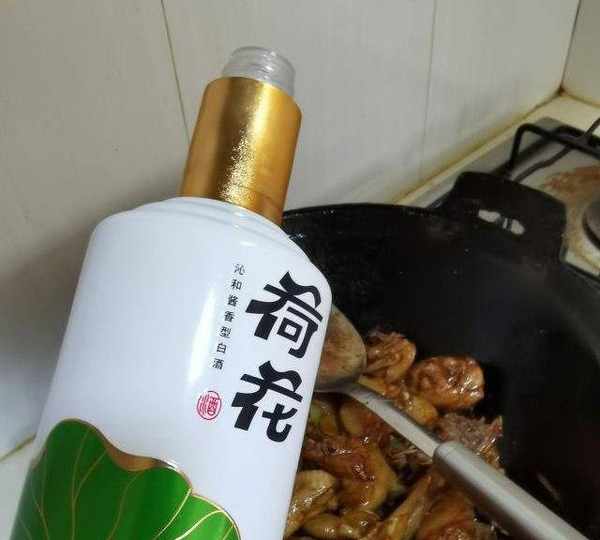 第9步、加白酒去腥(個人覺得烹煮鴨鵝時使用白酒比料酒去味效果更好)。