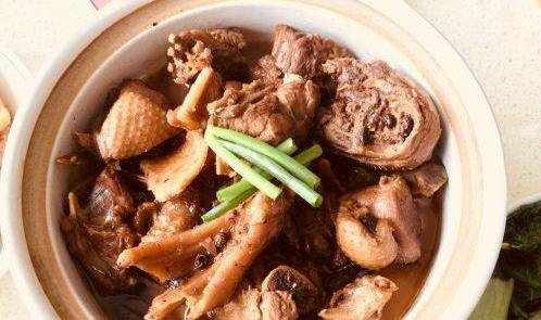 待鍋內湯汁變濃稠瞭,轉入砂鍋內,大火收汁