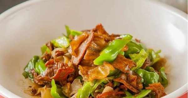 下入紅油豆瓣醬繼續煸炒,放入青椒大火翻炒30秒,加入白糖和生抽提鮮翻炒均勻出鍋即可。
