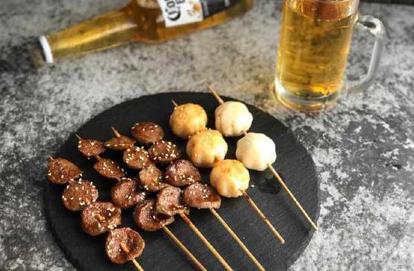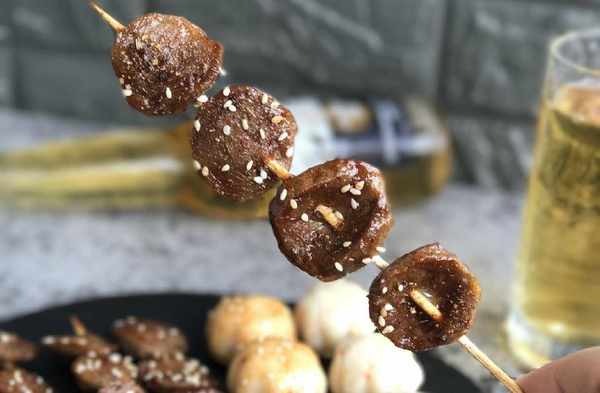 這次烤串用的是牛肉丸和芝士丸,烤過後的牛肉丸香味撲鼻,更加香脆,芝士丸脆口而且超級拉絲,好吃哭瞭,再來上一杯冰鎮啤酒,超級爽,夏天就該這麼過。