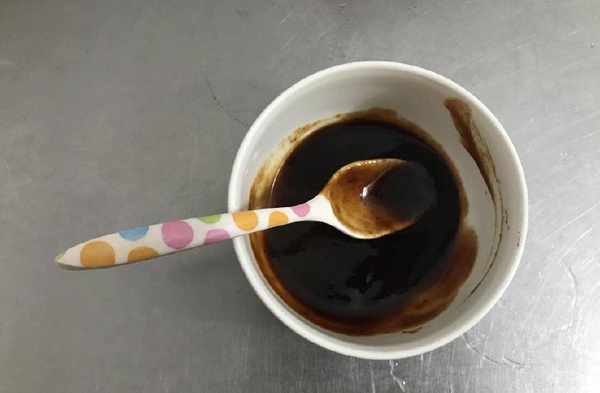 5、取2大勺燒烤醬,1小勺蜂蜜,拌勻成醬料。