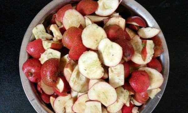 接下來就是一些細活瞭,要把準備好的山楂全部的處理一下瞭,需要先把山楂裡面的籽先剔除出來。看自己傢裡有沒有合適的工具,我是直接用刀把山楂橫著切開,切成兩半,然後用刀尖把核剔出來的。等到全部山楂全部處理過後,找個容器把山楂放入容器裡,加入沒過山楂的清水,然後加入少許的食用鹽,清洗幾遍,浸泡10分鐘。