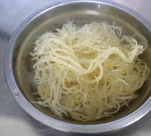 第2步、用涼水淘洗兩遍,再用涼水浸泡至舒展狀態。
