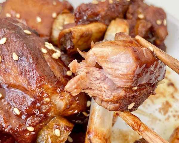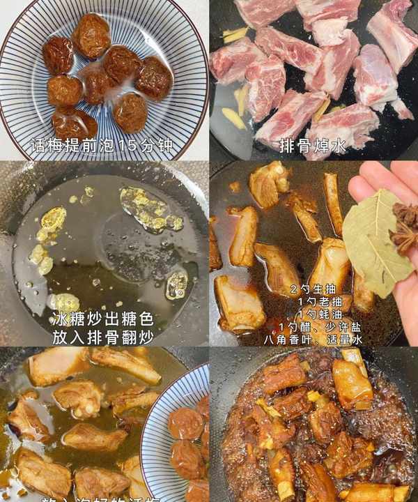 食材:豬小排、話梅8顆、香葉、八角、冰糖;