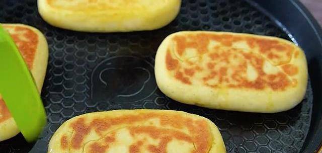 18.反復翻面多次,一直烙到兩面顏色金黃,按壓餅面會快回彈的話就可以出鍋瞭。