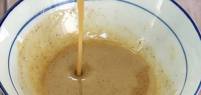 5.松弛時間做個油酥。20克面粉放入盆中,加入4克椒鹽粉,再倒入滾燙的熱油,攪拌成稀油酥備用。