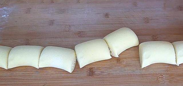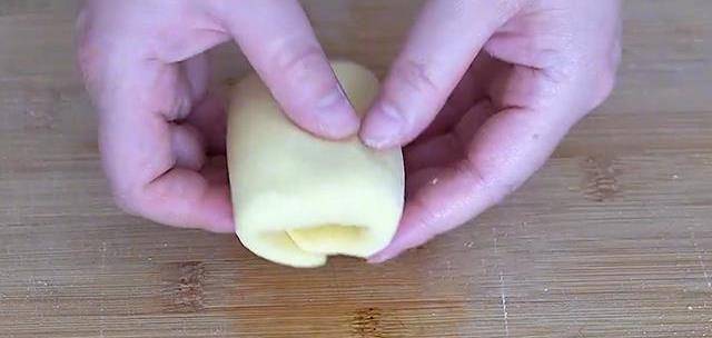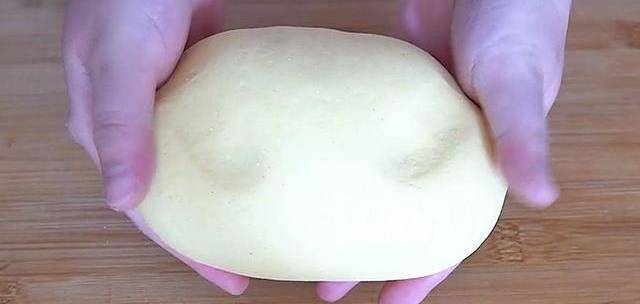 6.十分鐘後移到案板上,揉搓幾下,很快就變光滑瞭。