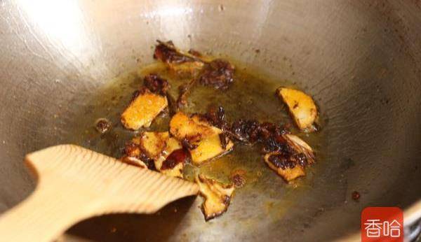5.鍋留些許底油,將蔥薑蒜爆香,放入辣椒醬炒出紅油。