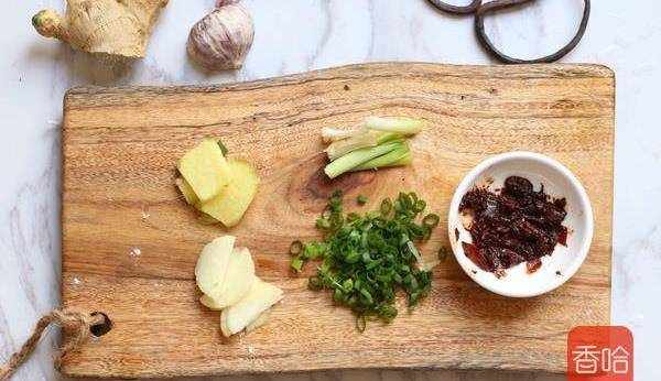 2.蔥切成蔥白和蔥花,蒜薑切片;準備半湯匙辣椒醬,這個可選,不加亦可。