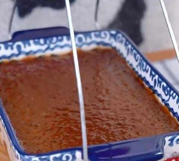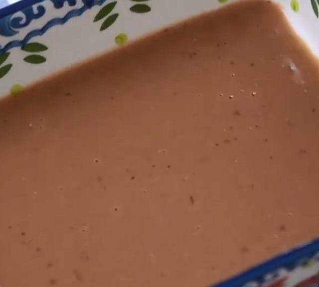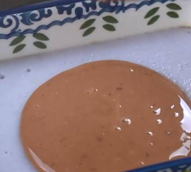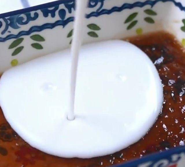 第9步、盤底先舀一勺紅糖,粉漿厚度根據喜好來決定。