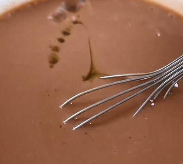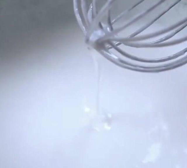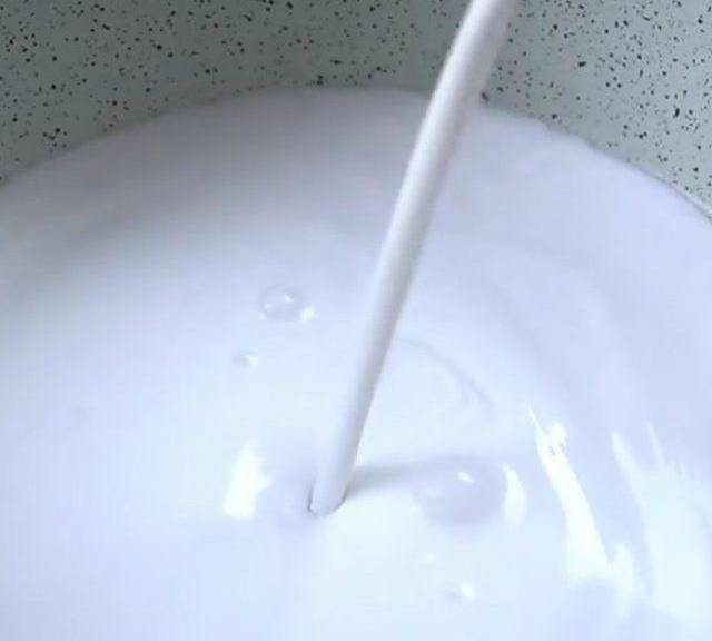 第7步、同樣是把調好的馬蹄粉漿舀50克左右,邊攪拌邊倒進去,混合至有點濃稠的狀態。