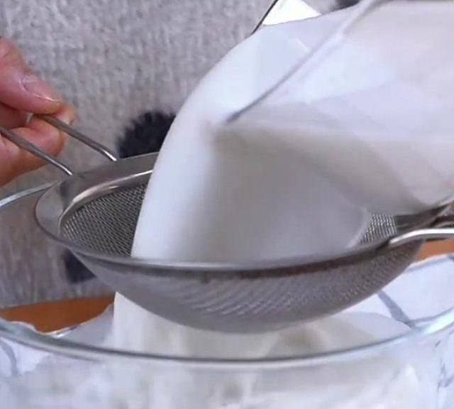 第1步、馬蹄粉中加入清水,攪拌均勻,然後過篩一下,這樣會更細膩。