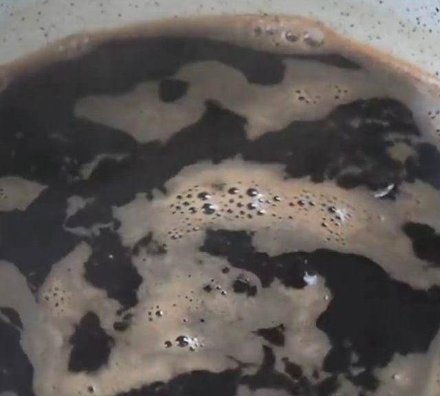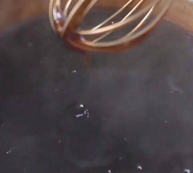 第2步、小鍋裡面倒入紅糖、清水,開小火煮到紅糖溶化微沸的狀態。