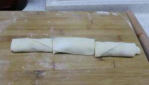 均勻分份兒,順時針擰成劑子,並搟薄。