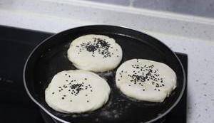 一面撒上黑芝麻,小火慢烙。