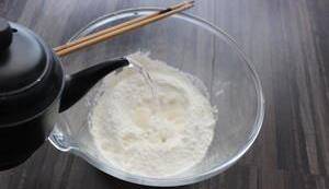 分次註入沸水,用筷子攪拌,直到沒有幹面。