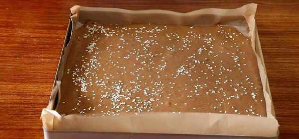 步驟八、烤盤裡鋪上一層油紙,然後倒入棗泥糊。