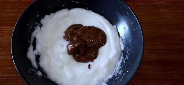 步驟五、將棗泥糊放入打發的蛋白裡。