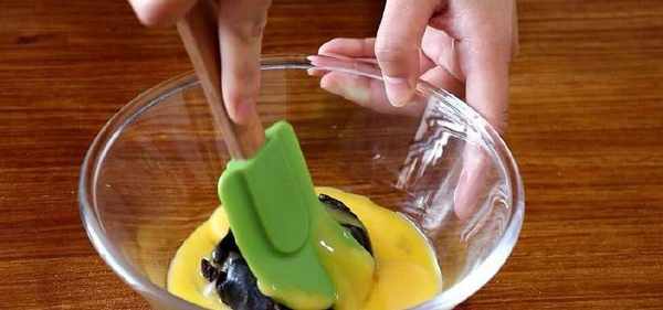 步驟二、將棗泥放在蛋黃的碗裡攪拌均勻。