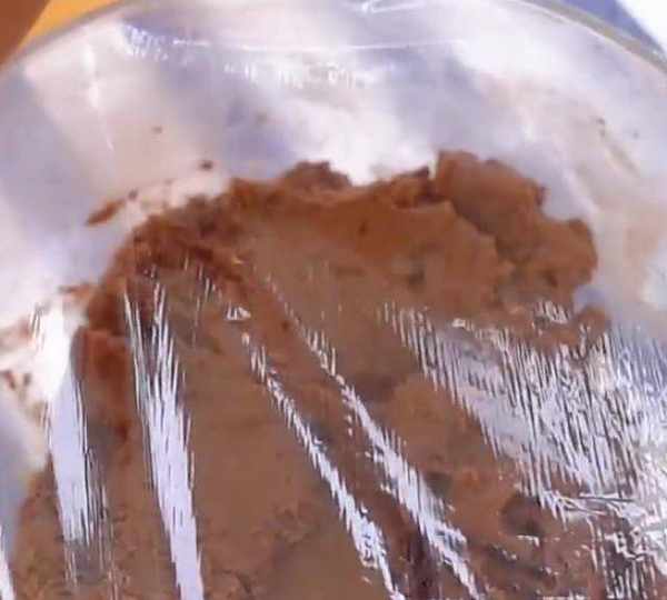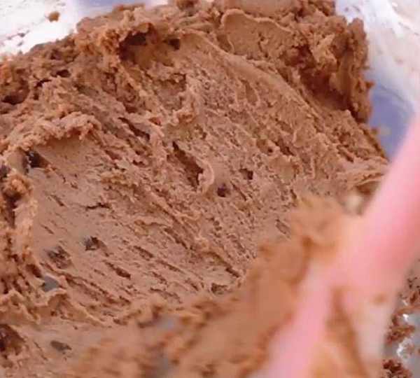 第4步、放入巧克力豆,巧克力豆可以適當多放一點,這樣吃起來更加過癮,混合成非常細膩的狀態即可。