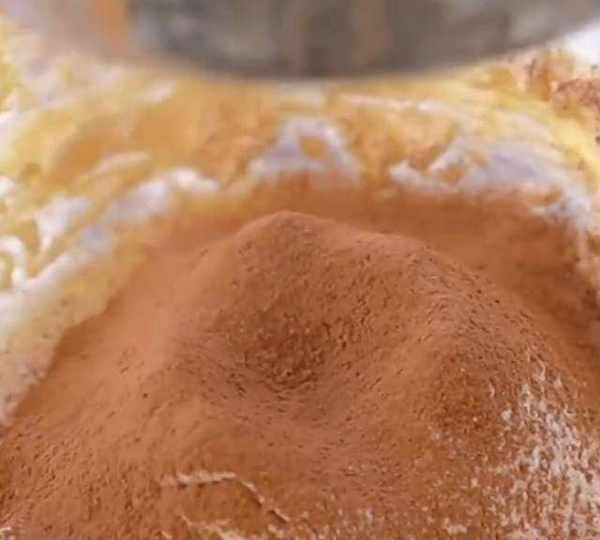 第3步、低筋面粉、可可粉、泡打粉和小蘇打過篩,這樣做出來的餅幹口感會更加細膩。