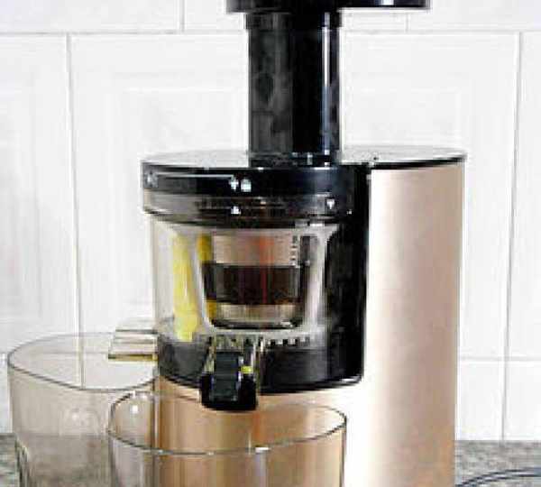 第6步、安裝好原汁機後,把冷凍好的奇異果拿出來室溫放置五分鐘,然後放入投料口。