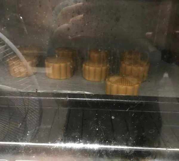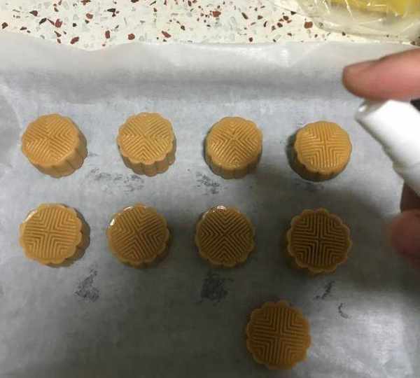 第15步、包好的月餅噴水。