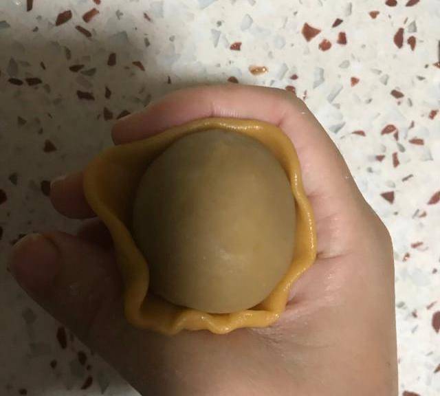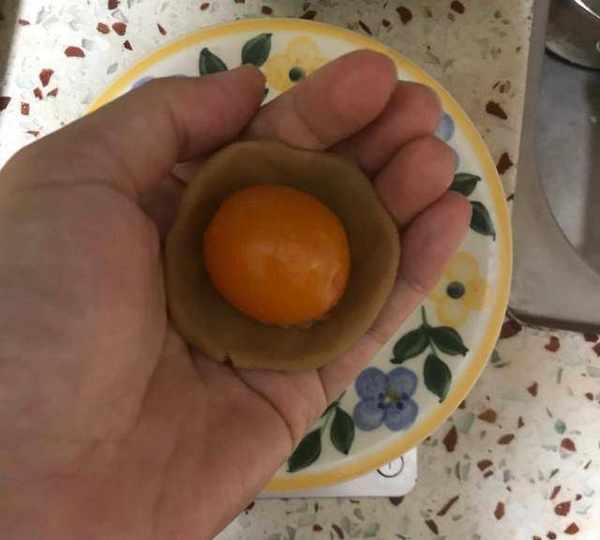 第8步、栗子泥包裹蛋黃,搓成球,待用。