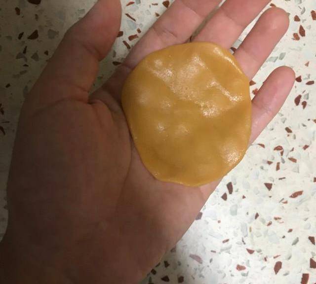 第7步、栗子泥或者紅豆沙與咸蛋黃,是35g