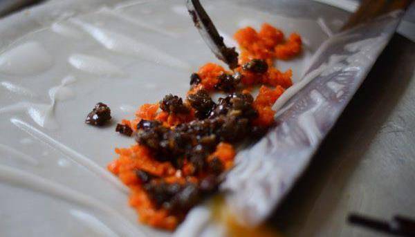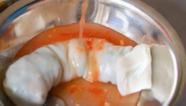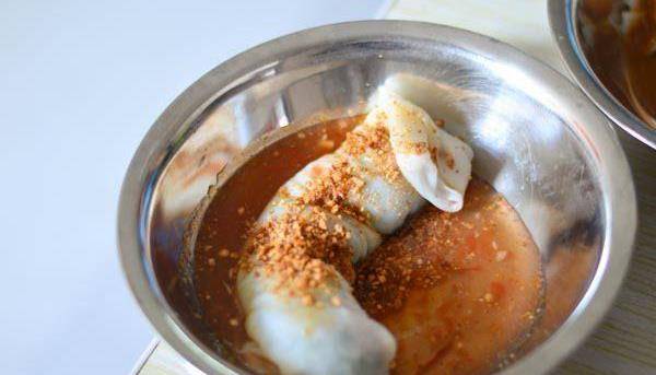 番茄醬澆灌在卷筒粉上,看著就有食欲!