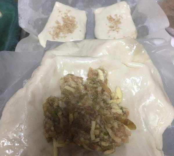 第2步、依次類推,有的豬肉餡兒裡面放瞭榨菜,用不用的芝麻區分。