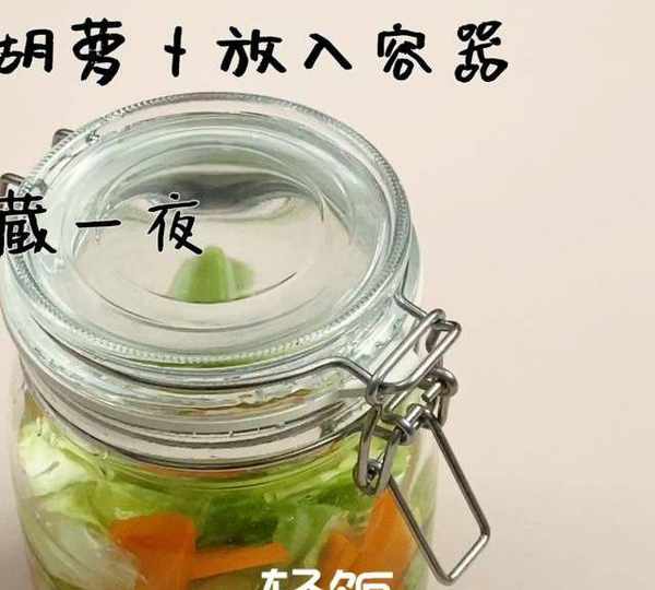 第6步、將包菜和胡蘿卜放入容器中,使料汁完全淹過食材,密封起來,放入冰箱冷藏一夜即可食用。