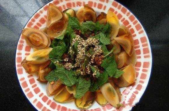 8.裹稻殼。鴨蛋裹上泥後放在稻殼上打個滾,然後放進一小缸中,擺滿後缸口用一張紙或大的菜葉蓋上,然後黃泥中放點鹽加水拌成泥,用該泥封在紙或菜葉上,不能讓其透氣,大約一個半月至兩個月即能食用(天氣熱時變的更快些)。此張圖片來自百度。供參考。