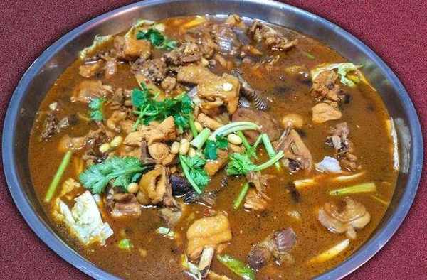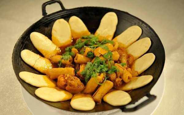 說瞭半天,地鍋雞是怎麼做的呢?地鍋雞的特色在於燒時用木炭,大鐵鍋保持土菜風味,鍋上貼一圈死面鍋餅。就是把雞剁小塊後打個雞蛋並加少許面粉攪拌均勻,直到雞塊都被面粉裹住。鍋裡油燒熱後炸點蔥薑和花椒辣椒,然後把雞塊到鍋裡煸炒,直到炒成金黃色,並加適量的鹽、醬油和水。然後面粉加水和好,和面一定要註意不要硬,若是喜歡吃軟一點的餅就不要反復揉,喜歡緊拽一點的就多揉幾下,等鍋裡開瞭,就可以揪成小塊拍成餅貼在菜周圍,記得餅的下部分要在菜水瞭。之後鍋蓋上擺個放瞭冷水的碗,先大火燒一會,在小火燜一會,等碗裡的水熱瞭,就可以瞭。