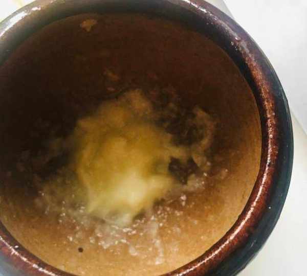 第5步、在晾涼面的過程中,搗適量蒜泥。