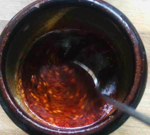 第6步、加入鹽、白糖、味精、生抽、陳醋、花椒油、油潑辣子,攪拌均勻。