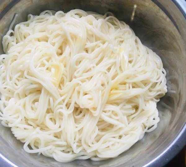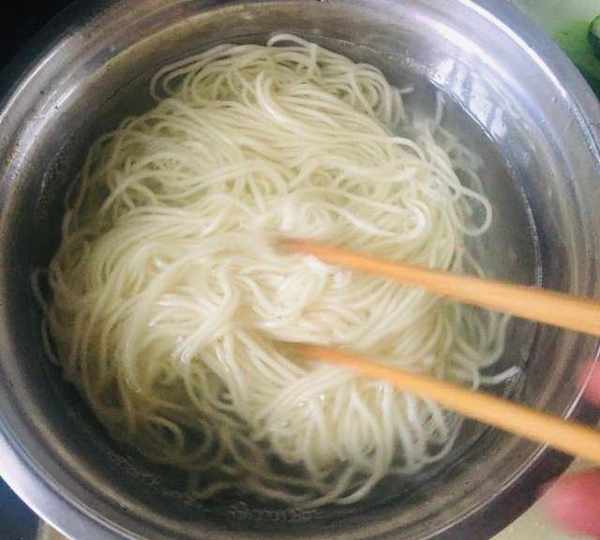 第2步、撈出的面用涼開水沖涼。
