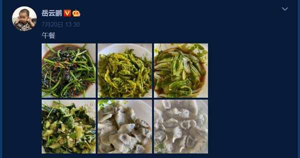 前幾天,嶽雲鵬又曬午餐瞭。不出所料,又是餃子。但是,這次不同的是,除瞭餃子,小嶽嶽這次還曬出瞭4個素菜。網友看到這搭配,紛紛留言表示這搭配神瞭!吃餃子還要這麼多配菜?怎麼隻有素菜,小嶽嶽不吃肉嗎?不過無論怎麼說,從嶽雲鵬曬吃日常來看,他對餃子絕對是真愛瞭,每次曬一定會有餃子。下面一起看看小嶽嶽的午餐搭配吧,看看有沒有饞到你。