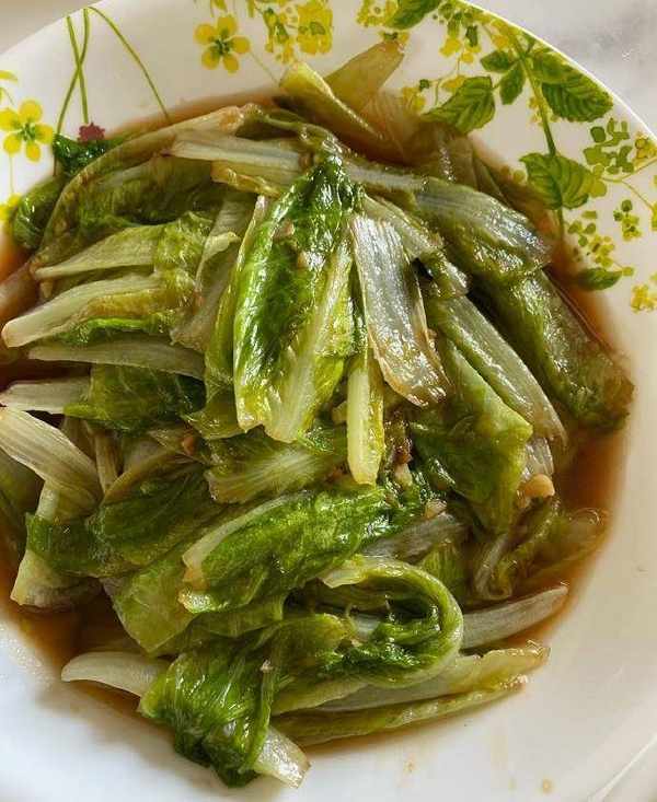 這第三道菜就非常明顯瞭,一看就是小白菜,而且做法似乎和第一道菜的做法差不多,依舊是蒜香味的。不過說實話,素菜這樣炒真的很好吃,而且做法也簡單。尤其是這種小白菜,脆嫩爽口,配上這炒法,鮮香好滋味。