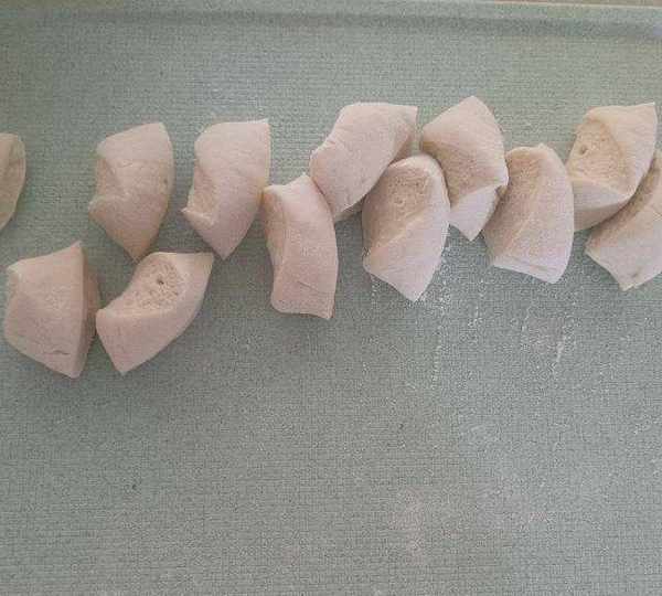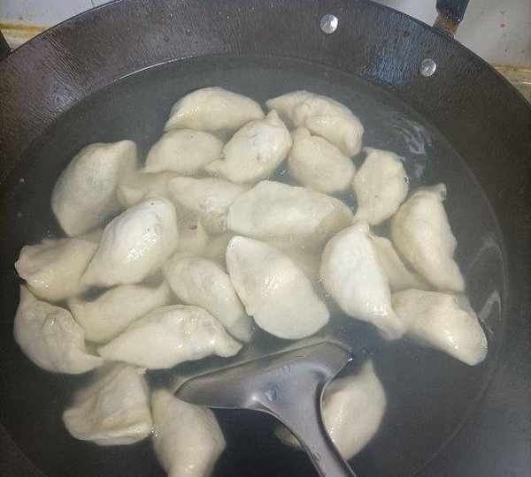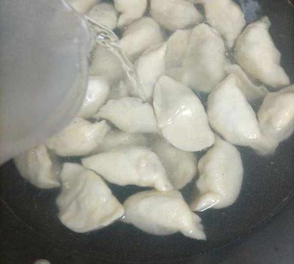 第17步、水燒開下入餃子輕輕推動防止粘連。