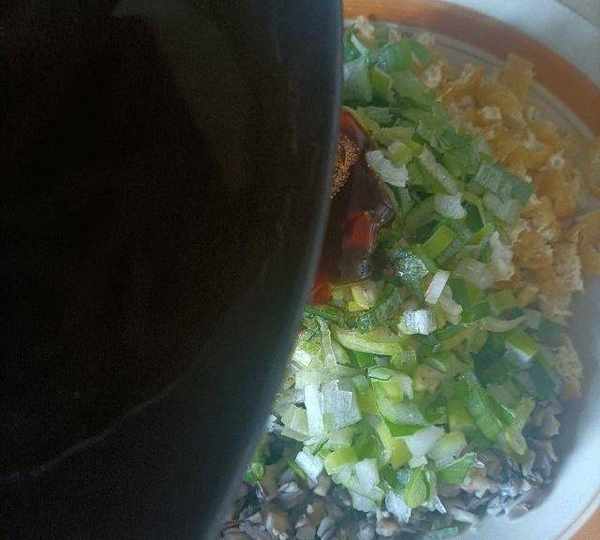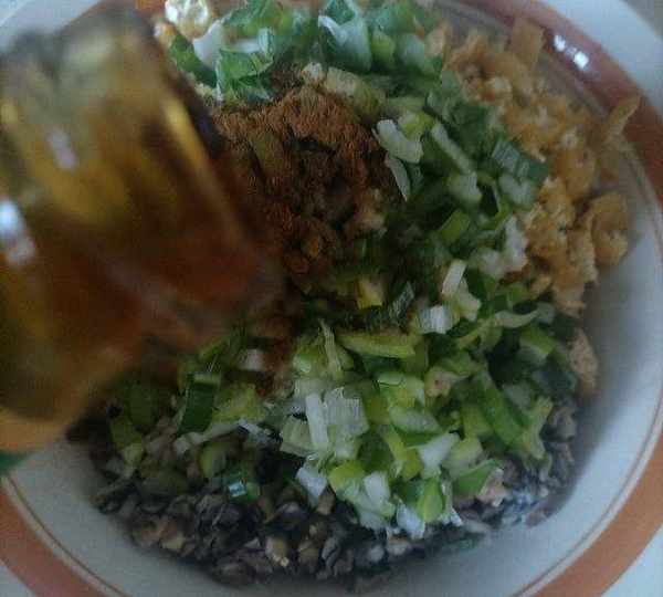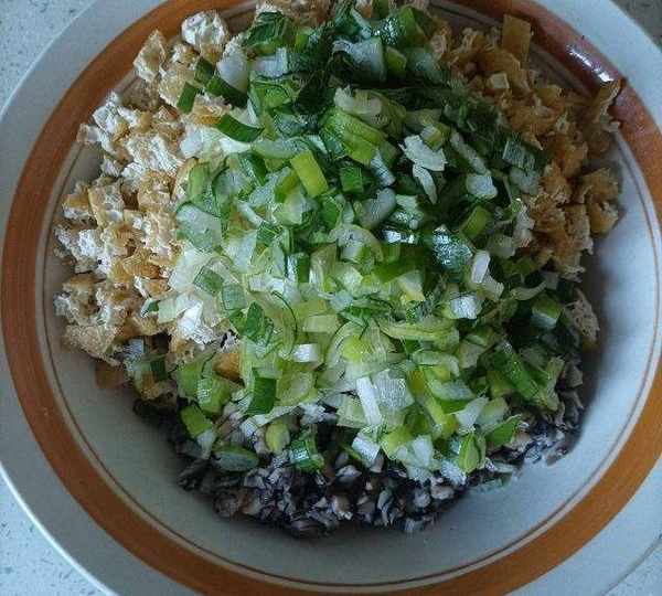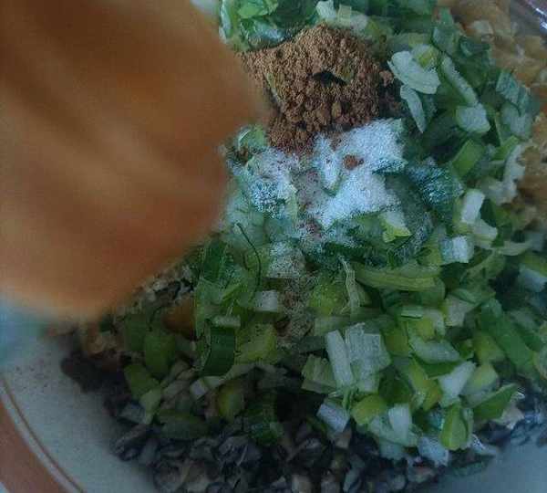 原料:平菇、油豆腐、大蔥、面粉、食用油、食鹽、五香粉、生抽、耗油、香油。