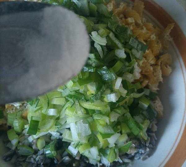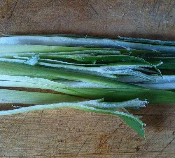 第5步、大蔥半根用刀豎切成條再切成蔥末。