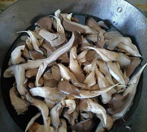 第2步、平菇洗凈之後下入鍋中燒水焯燙,去除水分和草酸。