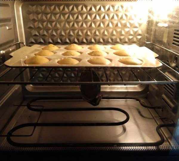 第8步、放入提前預熱好的好烤箱上下火170度,烘烤15分鐘,直到瑪德琳在烤箱裡微微凸起大肚子,邊緣上色就差不多瞭。