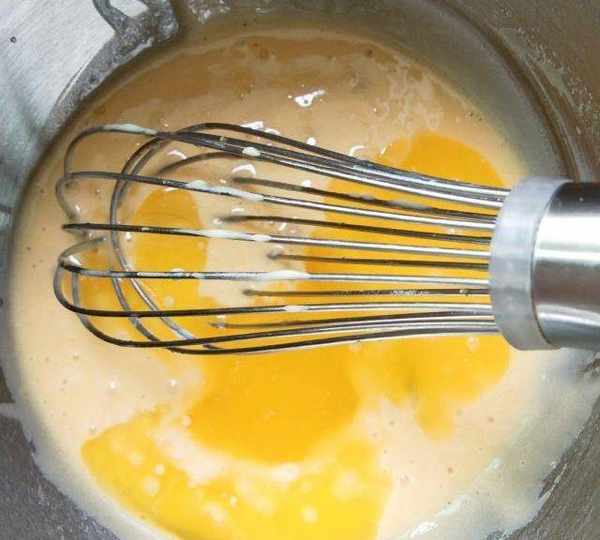 第1步、雞蛋糖粉用手動打蛋器攪拌均勻。