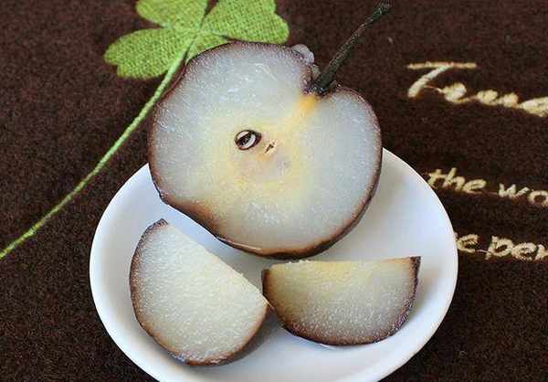 凍梨是黑褐色的皮,白白的肉,用手拿著,輕輕咬上一口,甜中略帶著一點酸,特有的綿軟之中又帶著一點脆。坐在熱炕上吃凍梨,屋內氣溫暖,凍梨透心寒,一涼一熱,冷熱分明,也成為東北人冬天裡一種特有的享受。